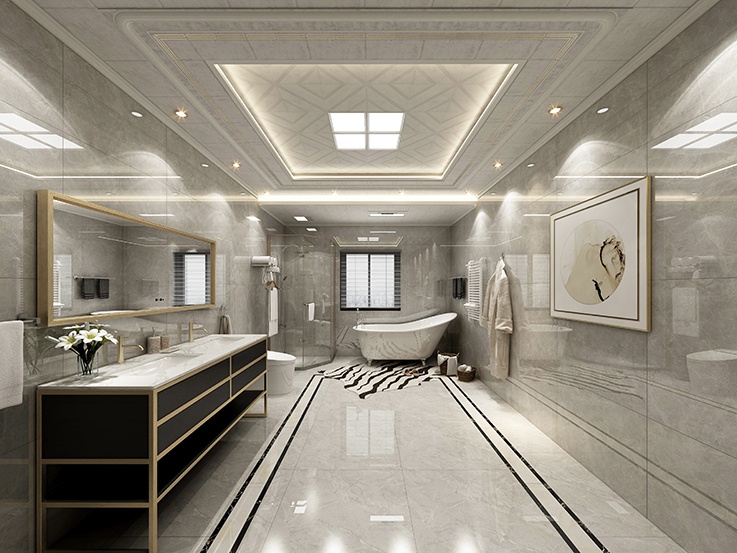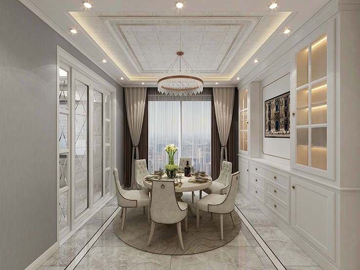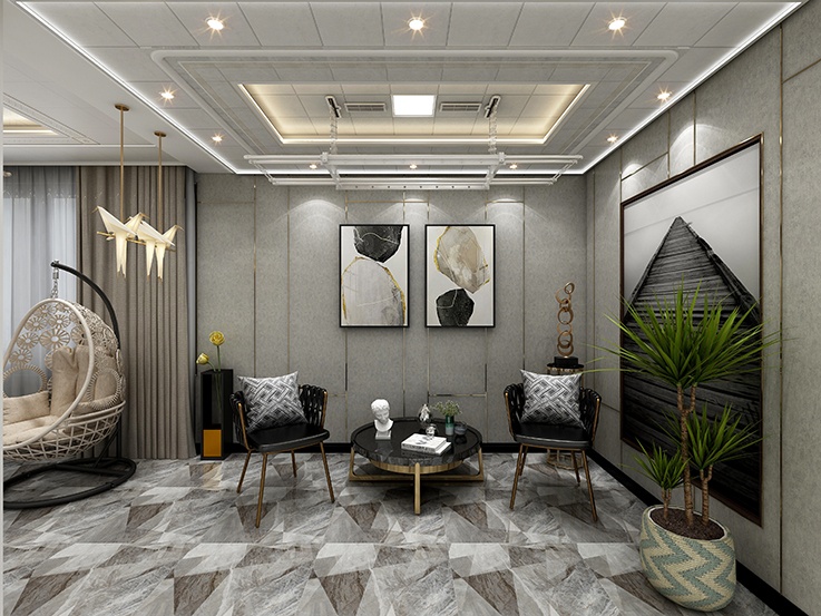 現(xiàn)代藝術(shù)的承轉(zhuǎn)啟合,灰色都扮演著重要的角色,設(shè)計運(yùn)用灰色石紋,結(jié)合香檳金高貴典雅的氣質(zhì),使整個設(shè)計充滿了現(xiàn)代美感。