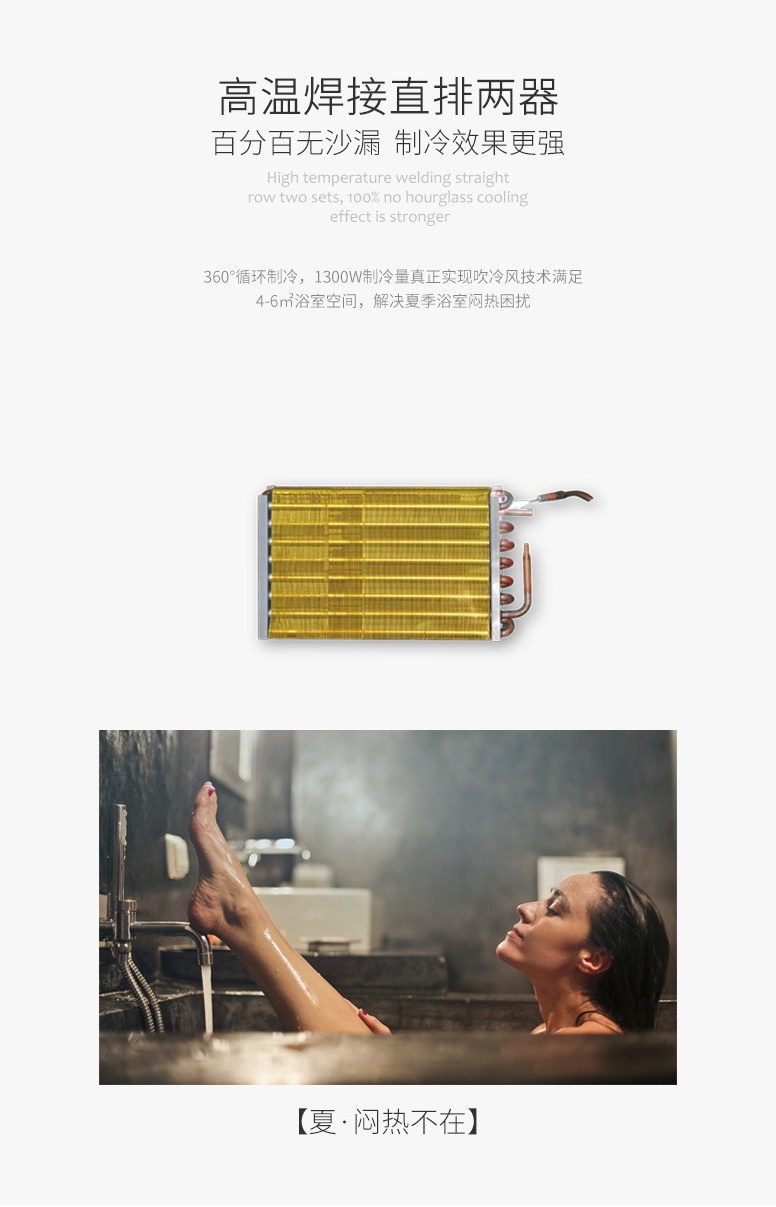 夏·悶熱不在:360°循環制冷,1300W制冷量真正實現吹冷風技術滿足,解決夏季浴室悶熱困擾